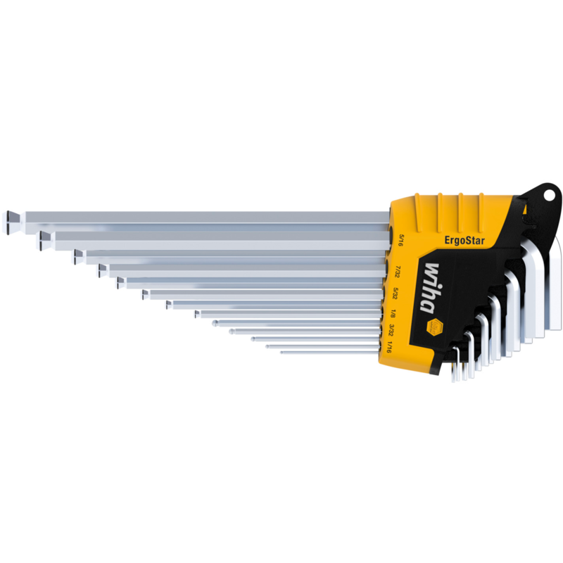 Wiha Stiftschlüssel Set 13-tlg. im ErgoStar Halter I Sechskant-Kugelkopf MagicRing I 1,3 mm - 9,5 mm I mattverchromt, Zoll-Ausführung (43852)