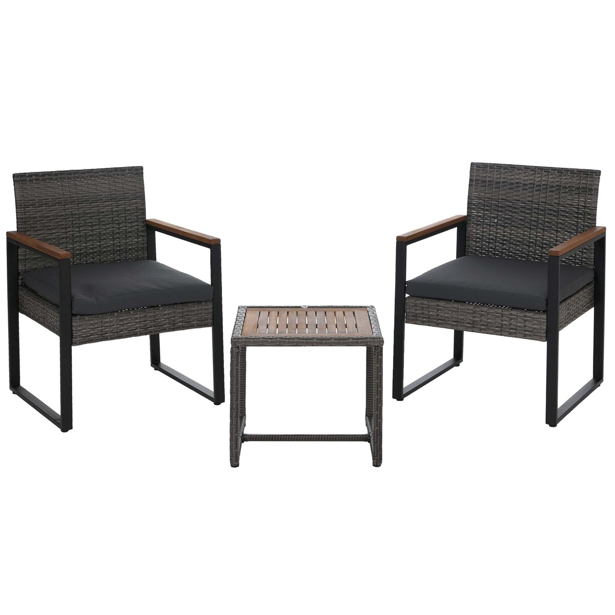 Mendler Poly-Rattan Garnitur HWC-P74, Lounge-Set Garten 2x Stuhl Tisch, Akazie Holz Stoff 180g/m² ~ grau, Polster grau