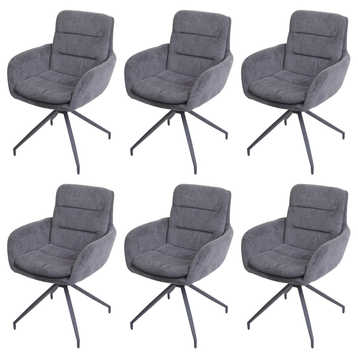 Mendler 6er-Set Esszimmerstuhl HWC-K32, Küchenstuhl Lehnstuhl Stuhl, drehbar Auto-Position, Stoff MVG ~ Cord grau