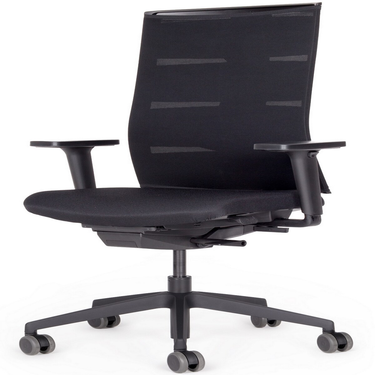 bümö SitzMeister Bürostuhl ergonomisch, Stoff & Netzbezug in schwarz - Ergonomischer Drehstuhl mit Rollen, Stuhl mit Armlehne, Synchronmechanik uvm.