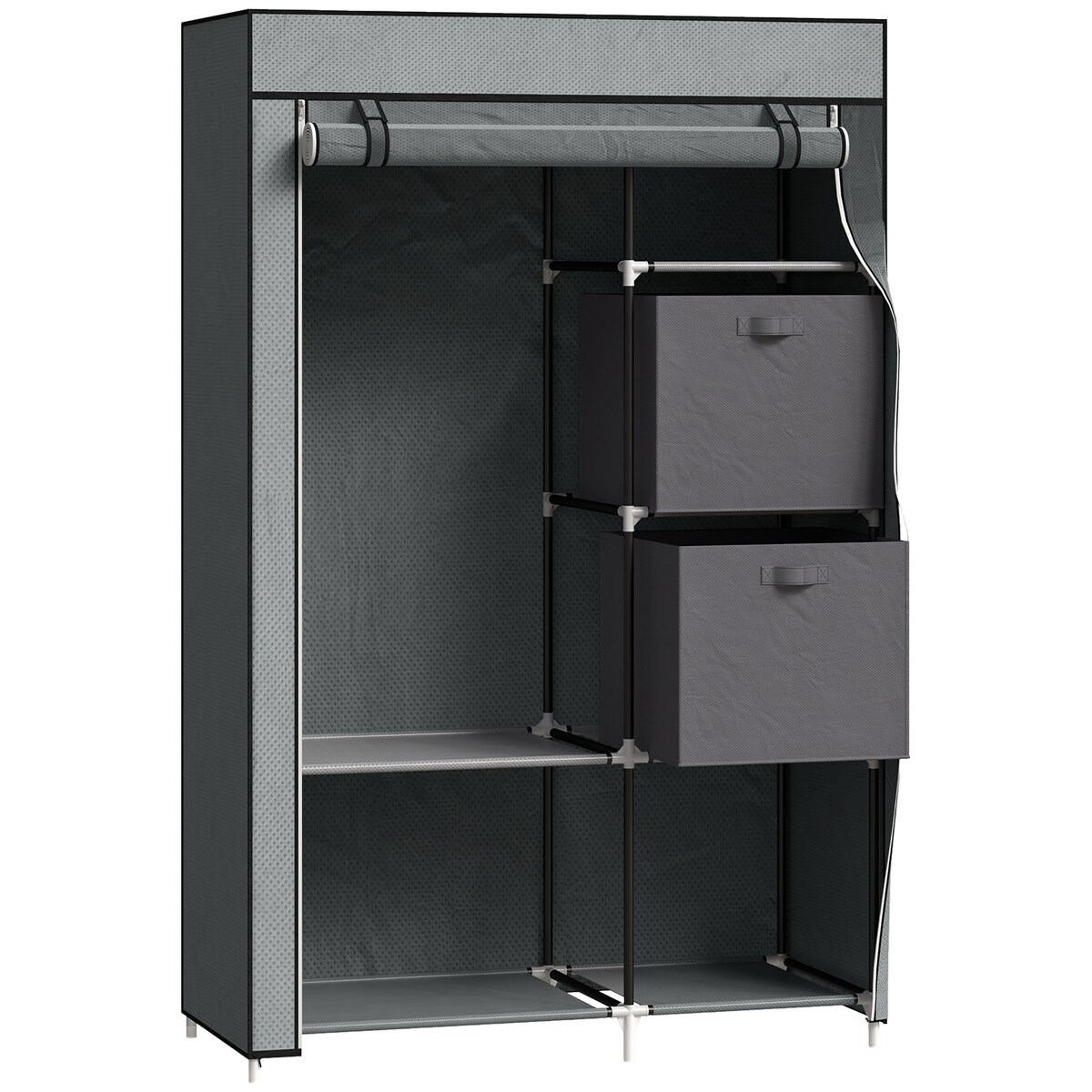 69" Kleiderschrank Stoffschrank Aufbewahrung Organizer with Non-Woven Fabric Quick and Easy to Assemble Extra Strong and Durable Gray
