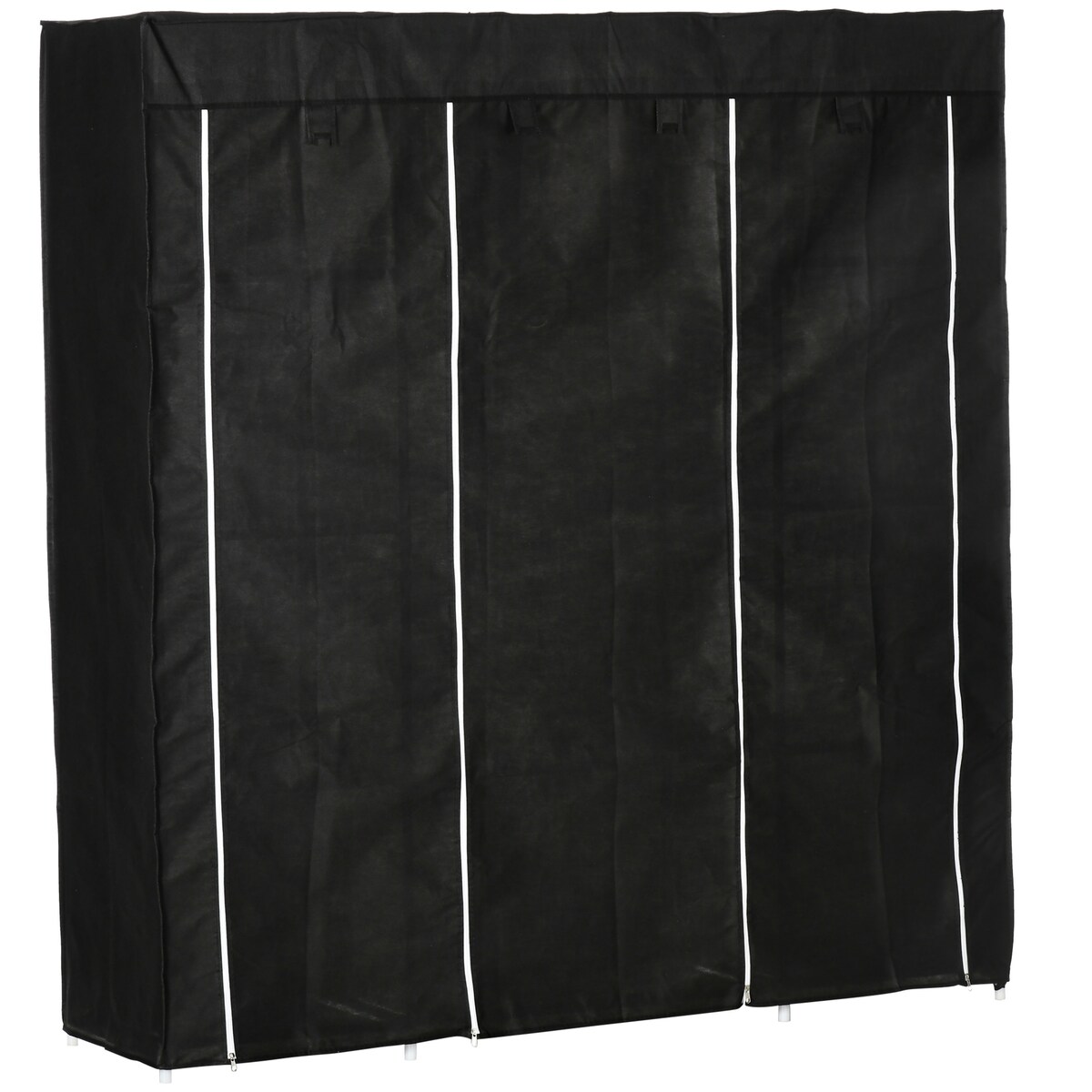 HOMCOM Kleiderschrank Stoffschrank mit 2 Kleiderstangen, 6 Fächern, Schwarz
