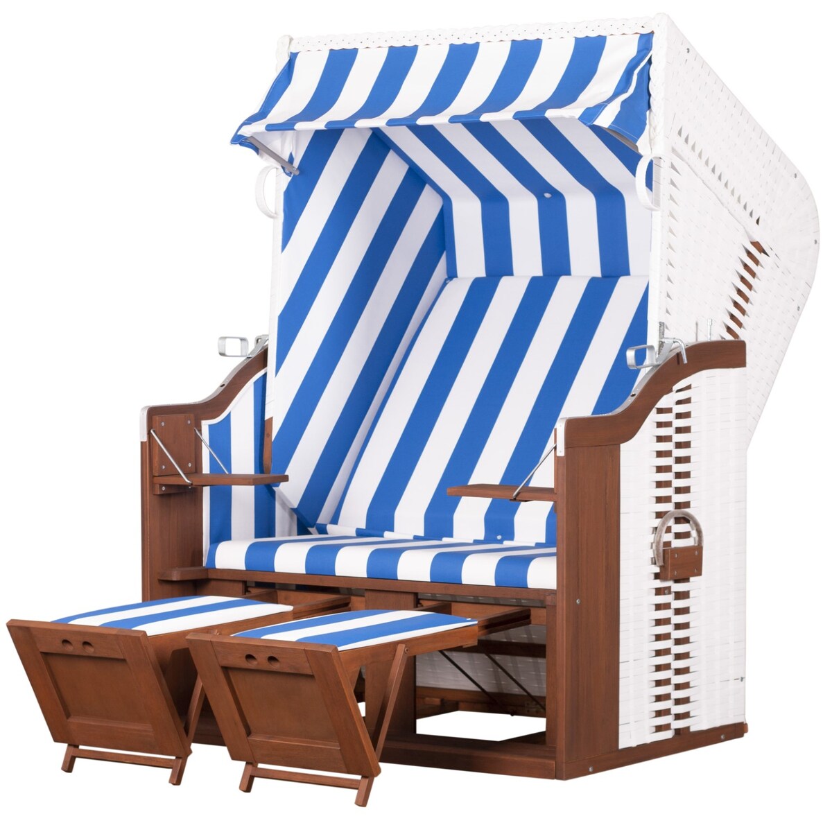 YOURSOL Strandkorb Profi Ostsee Fehmarn 991, blau-weiß gestreift, seewasserbeständig, Halblieger