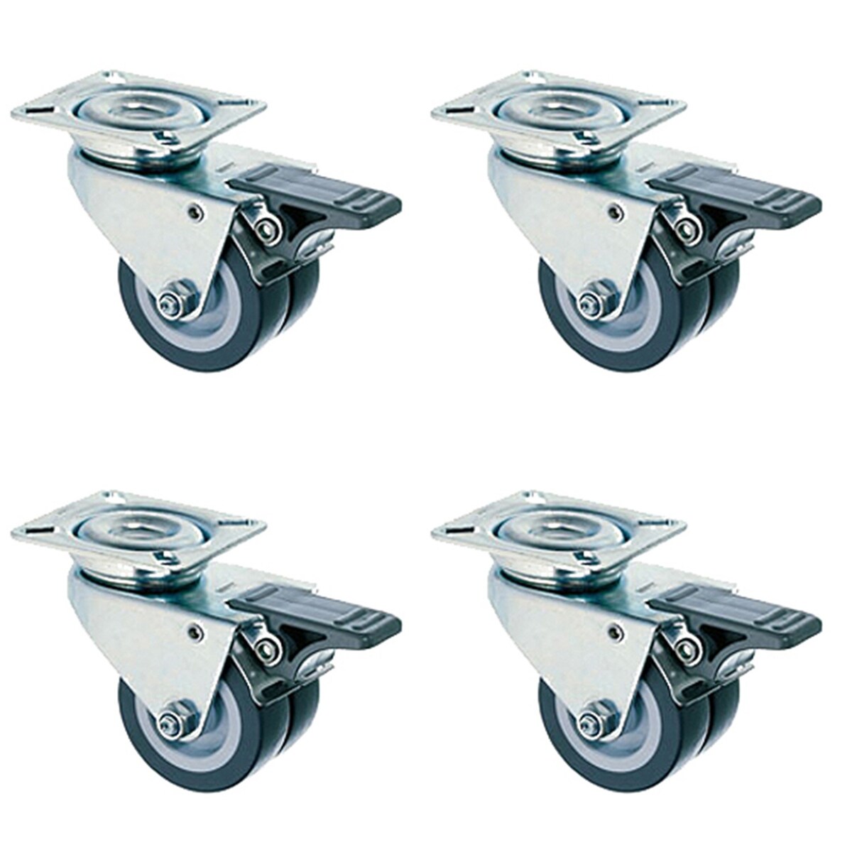 Intergrill 4 Stück Transportrollen lenkbare 360 Grad mit Bremse für Möbel mit Doppelrollen Strandkorbrollen Schwerlastrollen für Innen und Außen