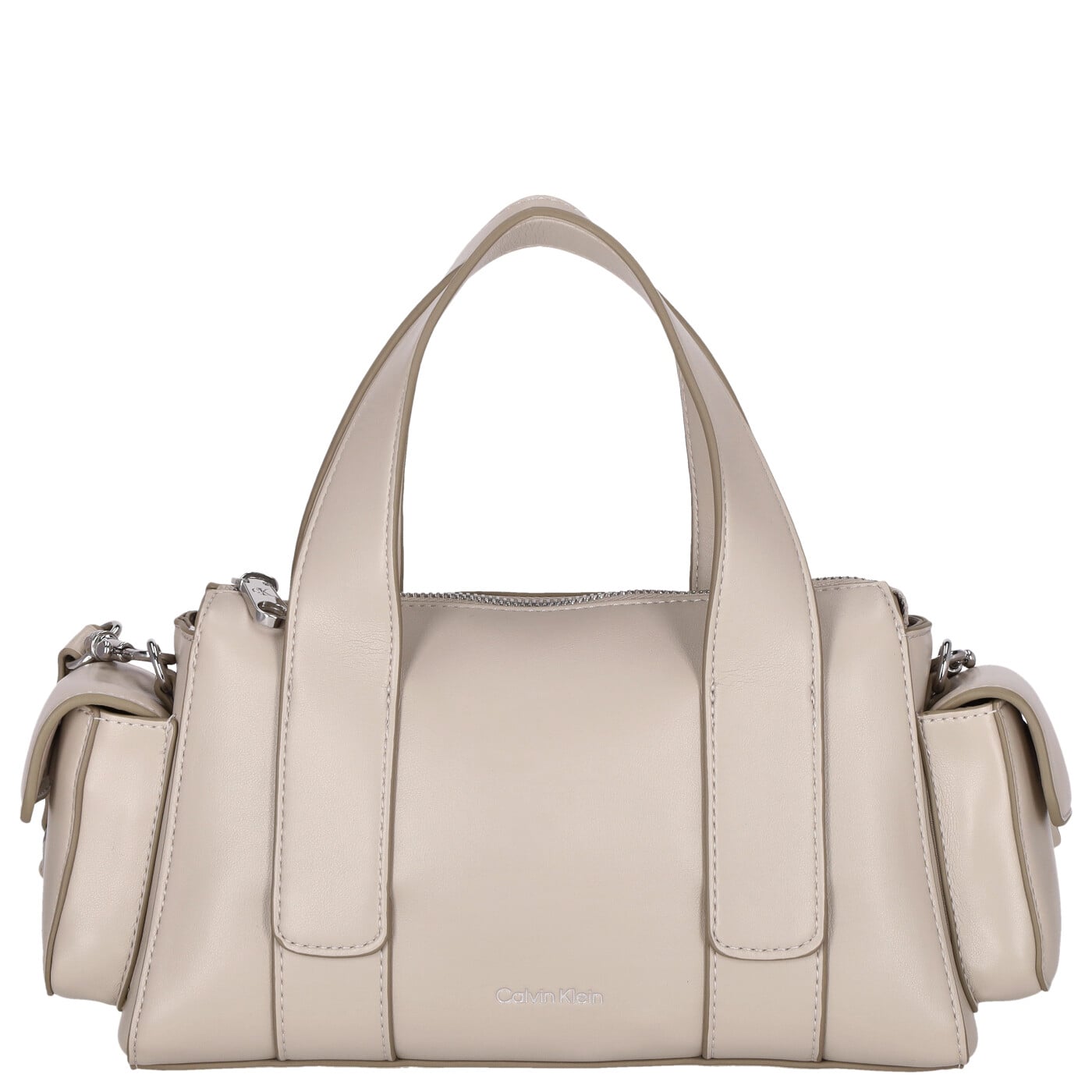 Calvin Klein Henkeltasche CK Webbing Strap Pocket chateau, Damen Handtasche beige aus Kunstleder