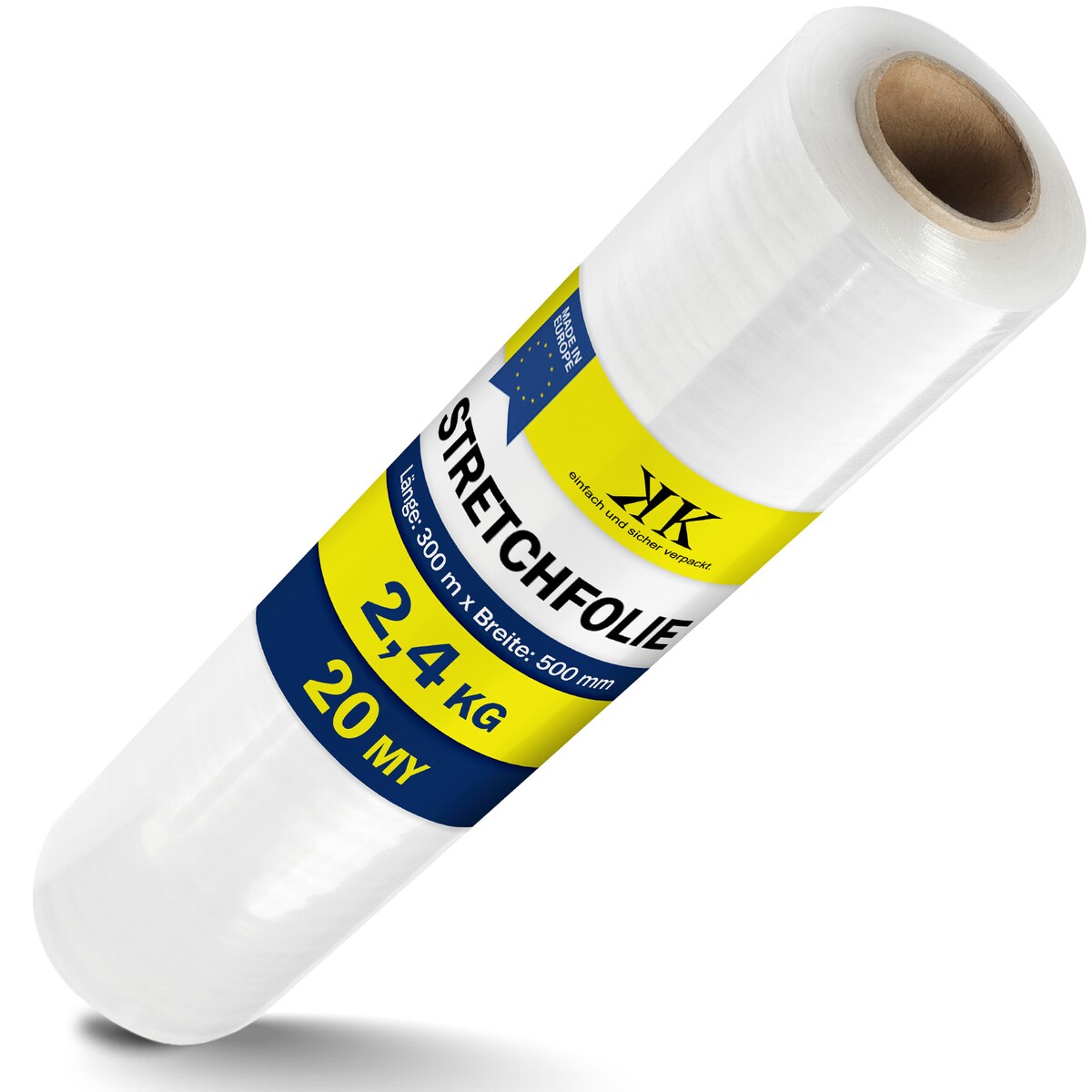 KK Verpackungen 1 Rolle Stretchfolie Palettenfolie Wickelfolie 20 my 500mm x 300m transparent