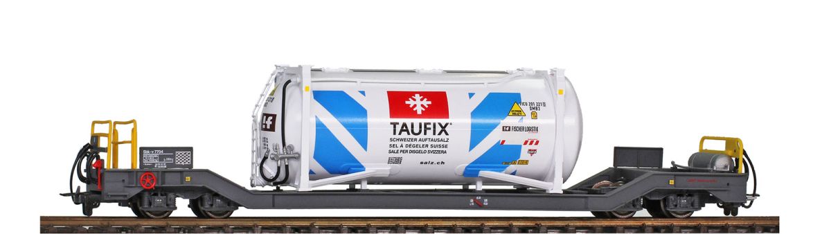 Bemo H0m 2289149 - RhB Sb-v 7729 Tragwagen mit Streusalz-Container "Taufix" | Modellbahn | Modelleisenbahn