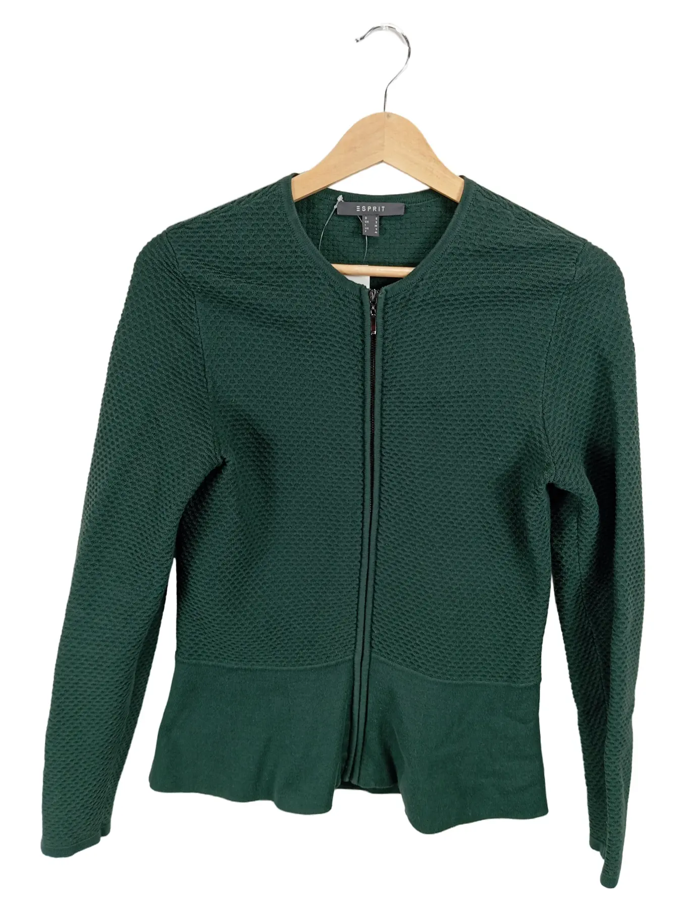 ESPRIT Damen Strickjacke Gr. S Grün Reißverschluss Strukturmuster
