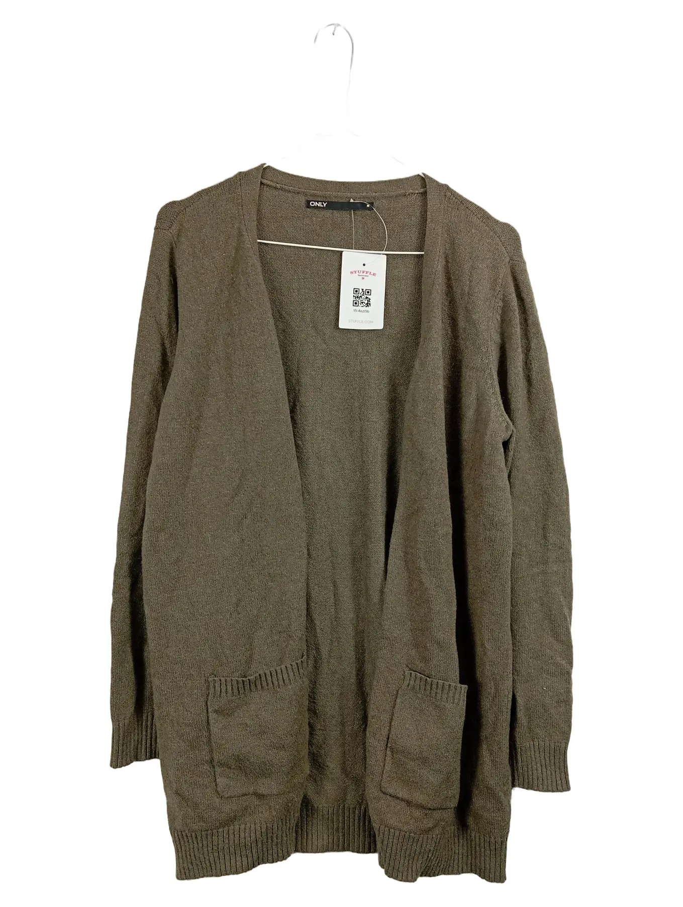 ONLY Damen Strickjacke Cardigan Gr. M Oliv Grün Langarm Taschen