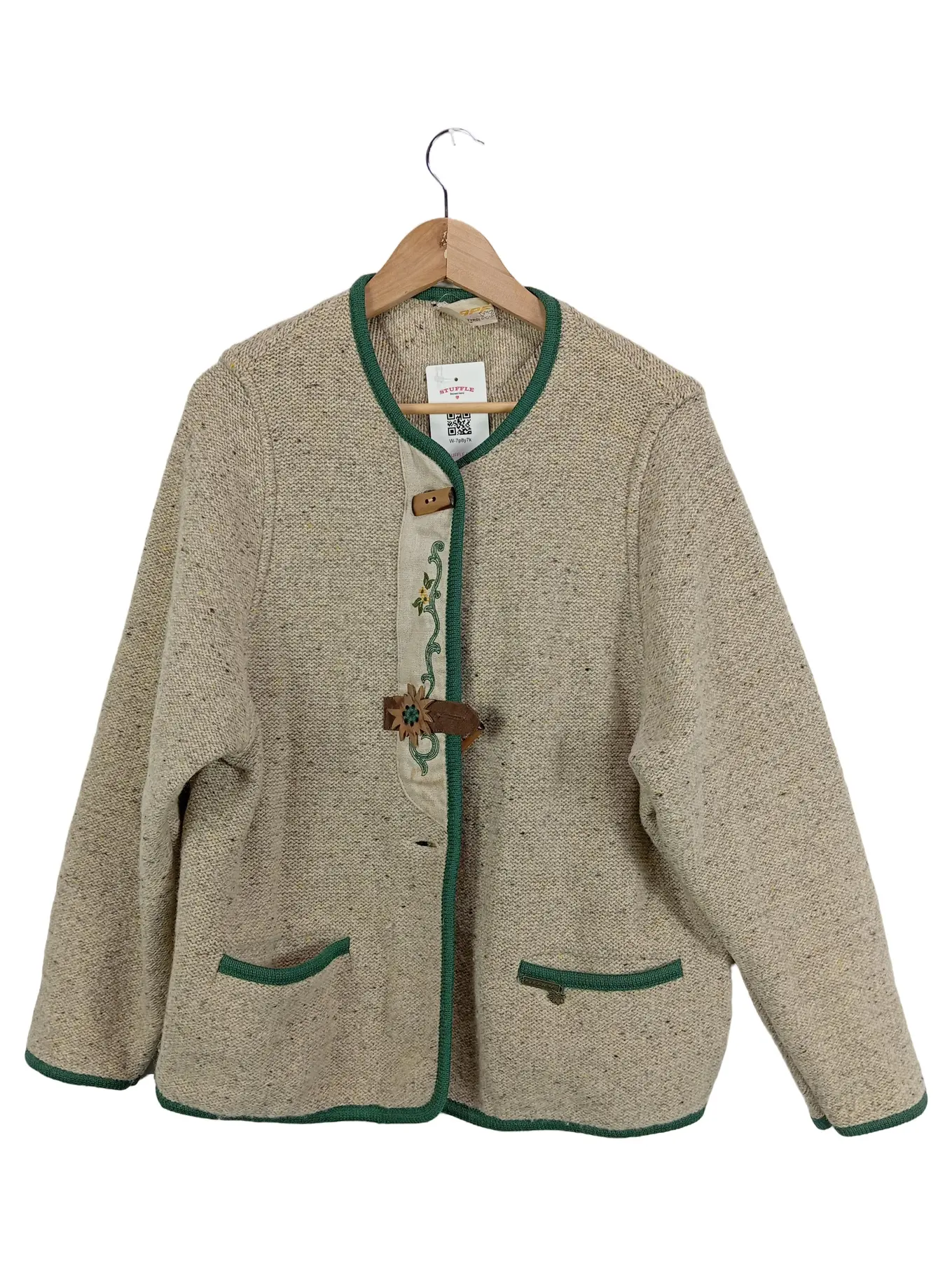 STAPF Damen Trachten Strickjacke Janker Wolle Gr. 40 Beige Grün