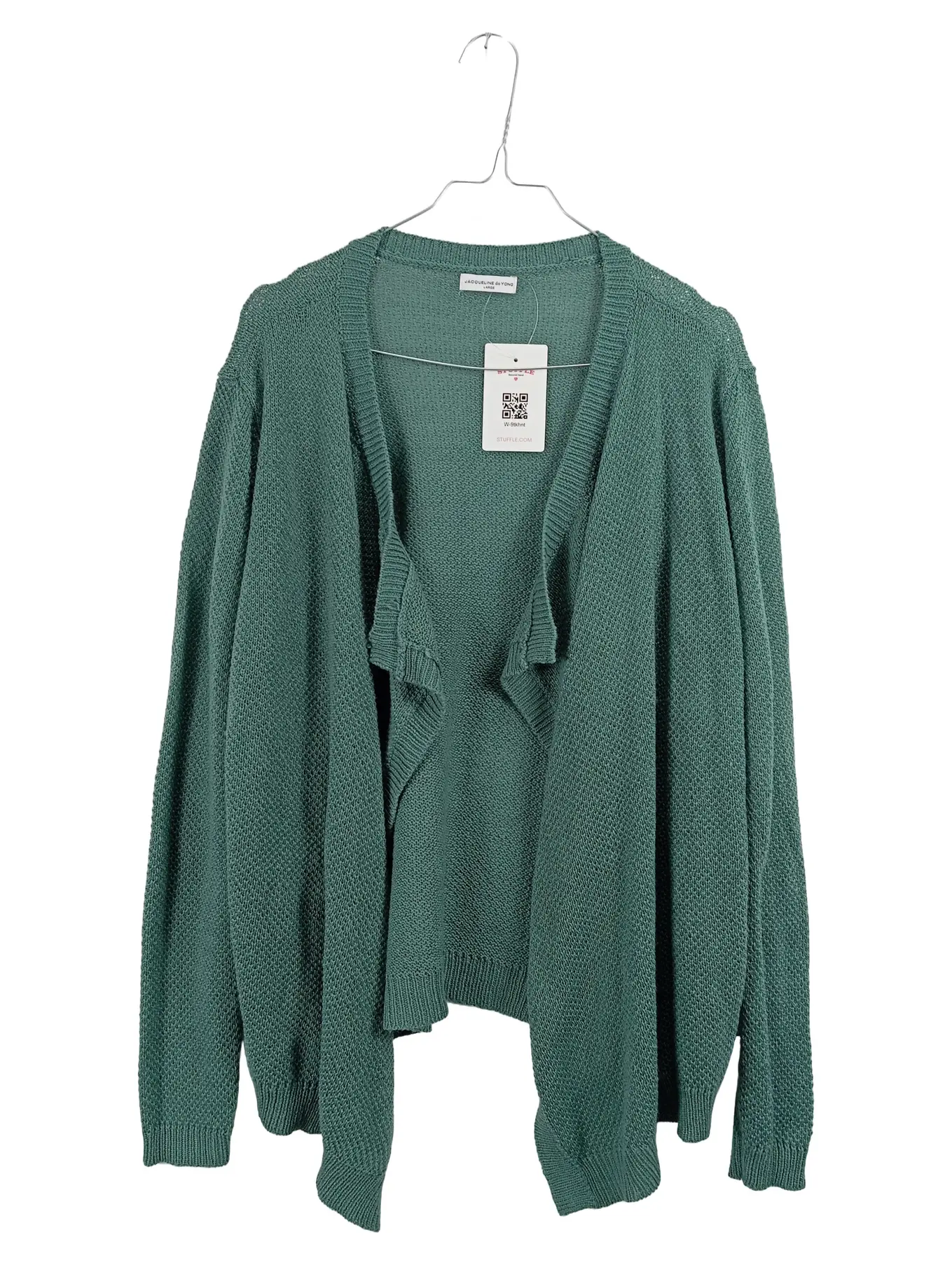JACQUELINE DE YONG Strickjacke Damen Gr. L Grün Rüschen Cardigan