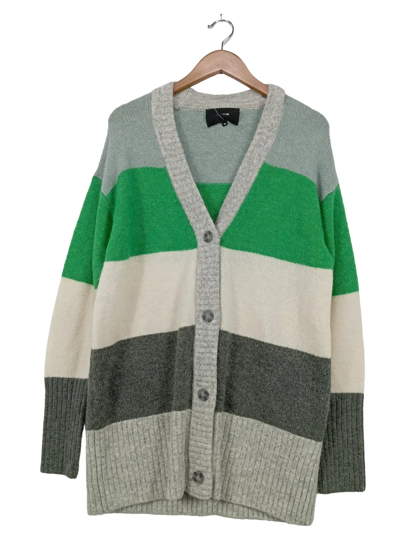 OPUS Strickjacke Damen Gr. 36 Cardigan Blockstreifen Grün Grau