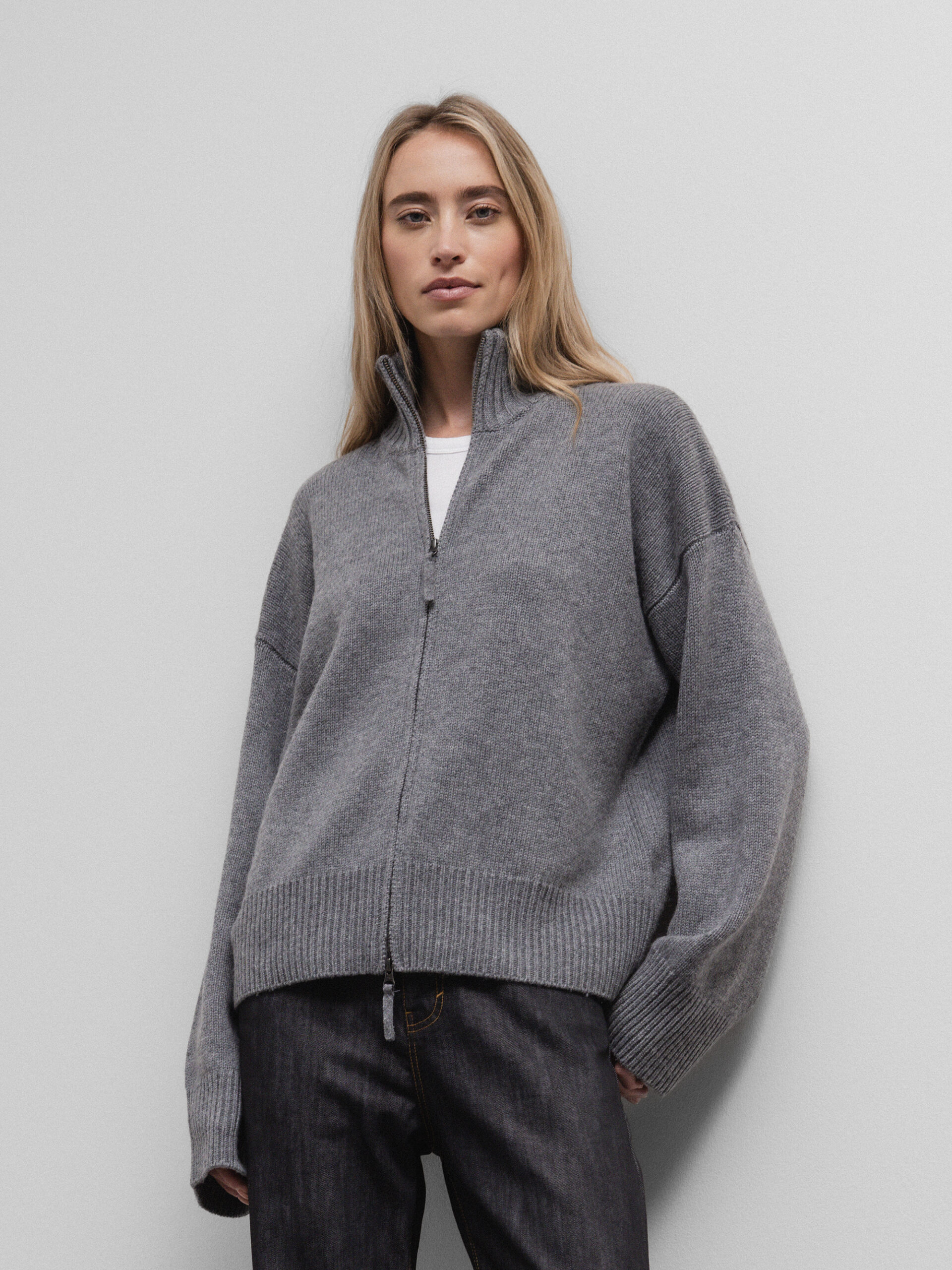 STREET ONE Damen Strickjacke Gr. 38/M Grau Casual Wolle Mix Gr. 38 Damen