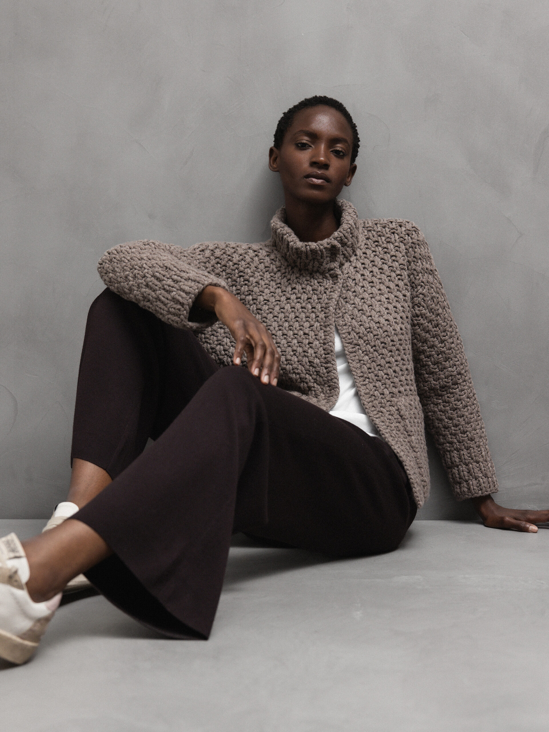 Damen Strickjacke PIRALA in Grün aus Baumwolle mit Wolle – mit Ripp-Struktur