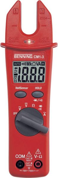 Benning CM 1-3 Stromzange, Hand-Multimeter digital CAT III 1000 V, CAT IV 600 V Anzeige (Counts): 2000