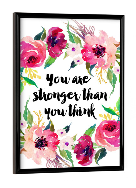 Poster mit schwarzem Rahmen "You Are Stronger Than You Think" artboxONE - Typografie,Floral