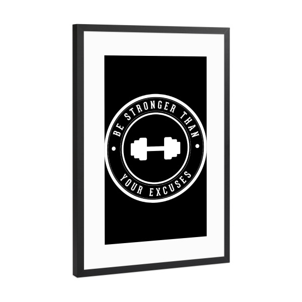 Poster mit Rahmen Schwarz (Metallic) "Be stronger than your excuses 2" artboxONE - Typografie,Schwarzweiß,Sport,Sport / Motivation,Für Mama,Für Papa