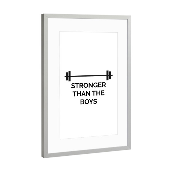 Poster mit Rahmen Silber "Stronger than the boys" artboxONE - Typografie,Schwarzweiß,Sport,Sport / Motivation