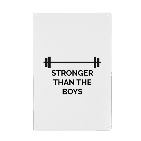 Metall Poster "Stronger than the boys" artboxONE - Typografie,Schwarzweiß,Sport,Sport / Motivation
