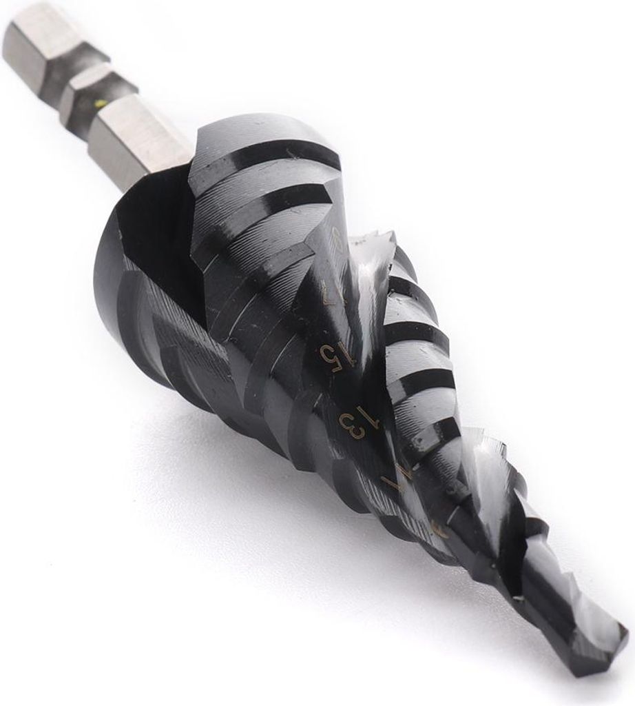 Stufenbohrer HSS Spiralnut Pagodenlochreibahle Sechskantschaftwerkzeug für Metall Schwarz 10 Stufen (4šC22 mm)