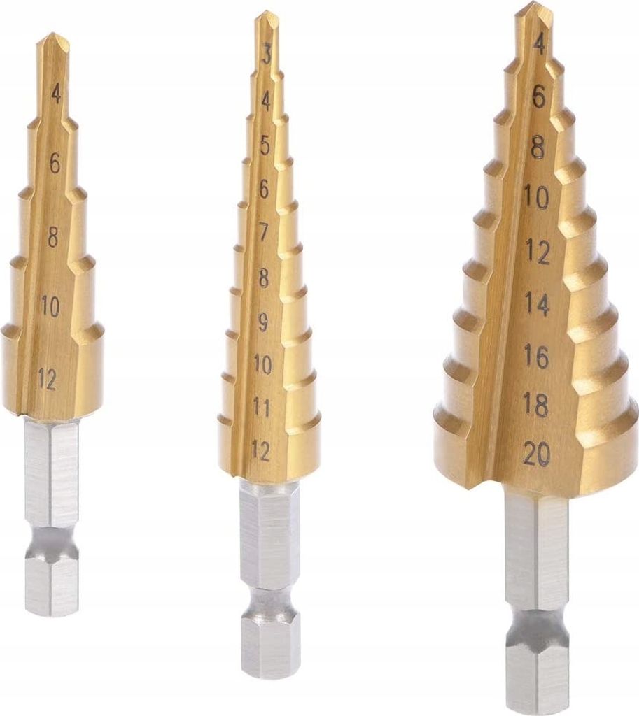 HSS Stufenbohrer Set 3-tlg. Titan - Schälbohrer, Kegelbohrer, Kegelsenker - präzise, langlebig, robust - Metall, Holz, Heimwerken