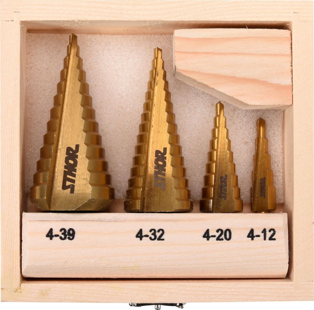 Sthor - Stufenbohrer HSS Titan für Metall, Holz, Kunststoff, Größen zur Auswahl von 4-12/4-20/4-32/4-39 mm, oder im Set, selbstzentrierend konis...