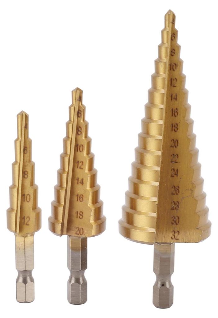 Pagode-Bohrlochöffner, schnelles Bohren, dreieckiger Griff, 4–32 mm, 4–20 mm, 4–12 mm, Stufenbohrer für Holz und Metall