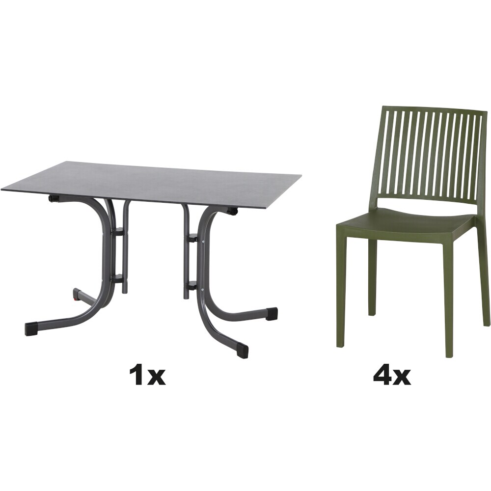 SIENA GARDEN Urban Lights Set 5teilig Lane Stuhl gastrotauglich olive mit Tisch Sola 120x80