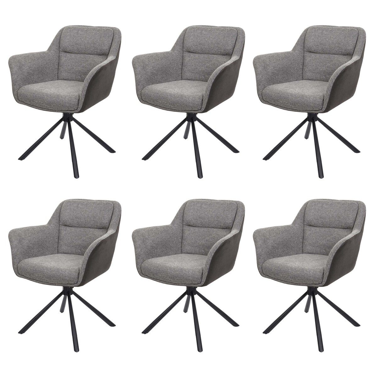 Mendler 6er-Set Esszimmerstuhl HWC-K33, Küchenstuhl Stuhl, drehbar Auto-Position, Stoff MVG ~ Kunstleder, grau-dunkelgrau