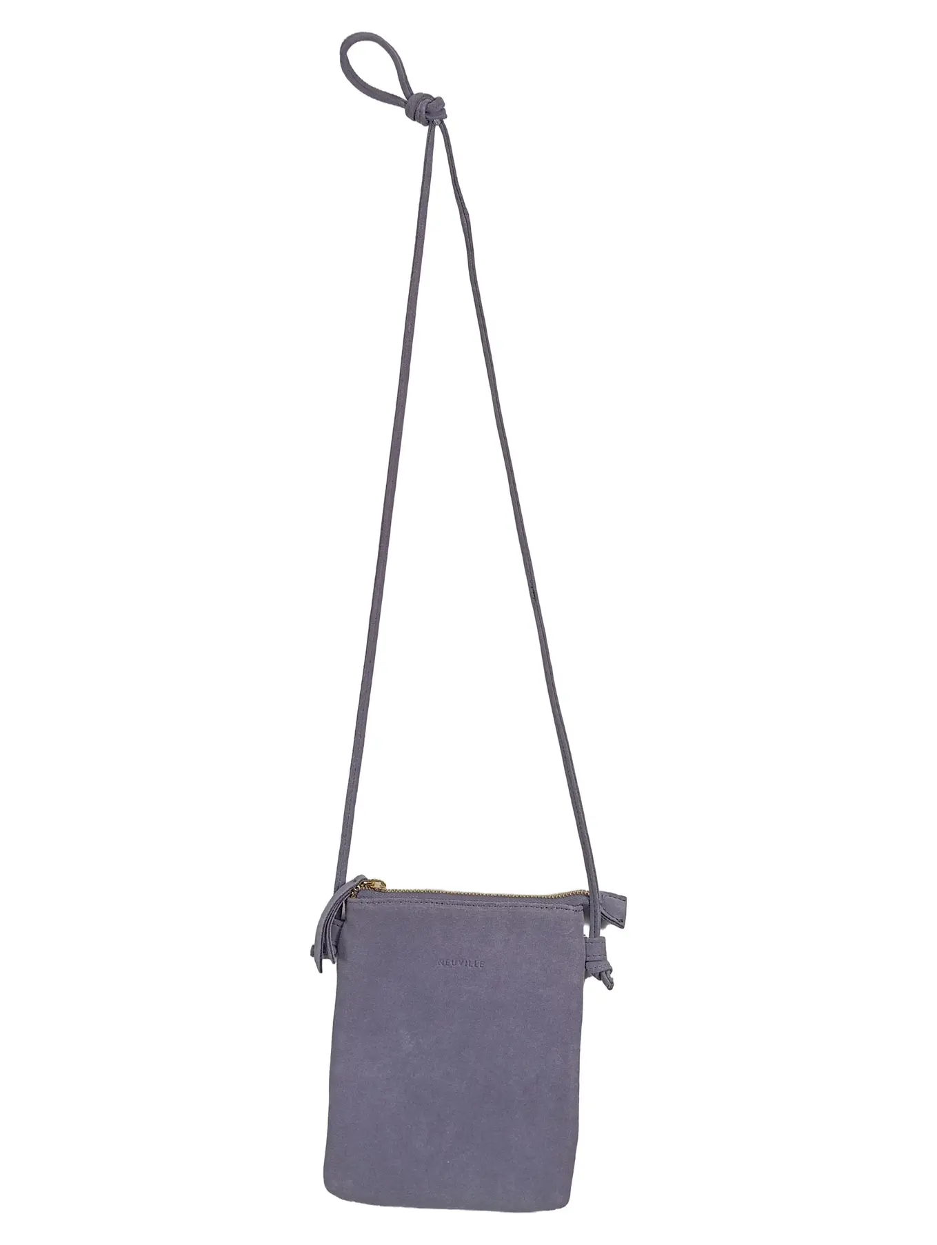 NEUVILLE Umhängetasche Suede Leder Grau Crossbody Bag Damen Klein