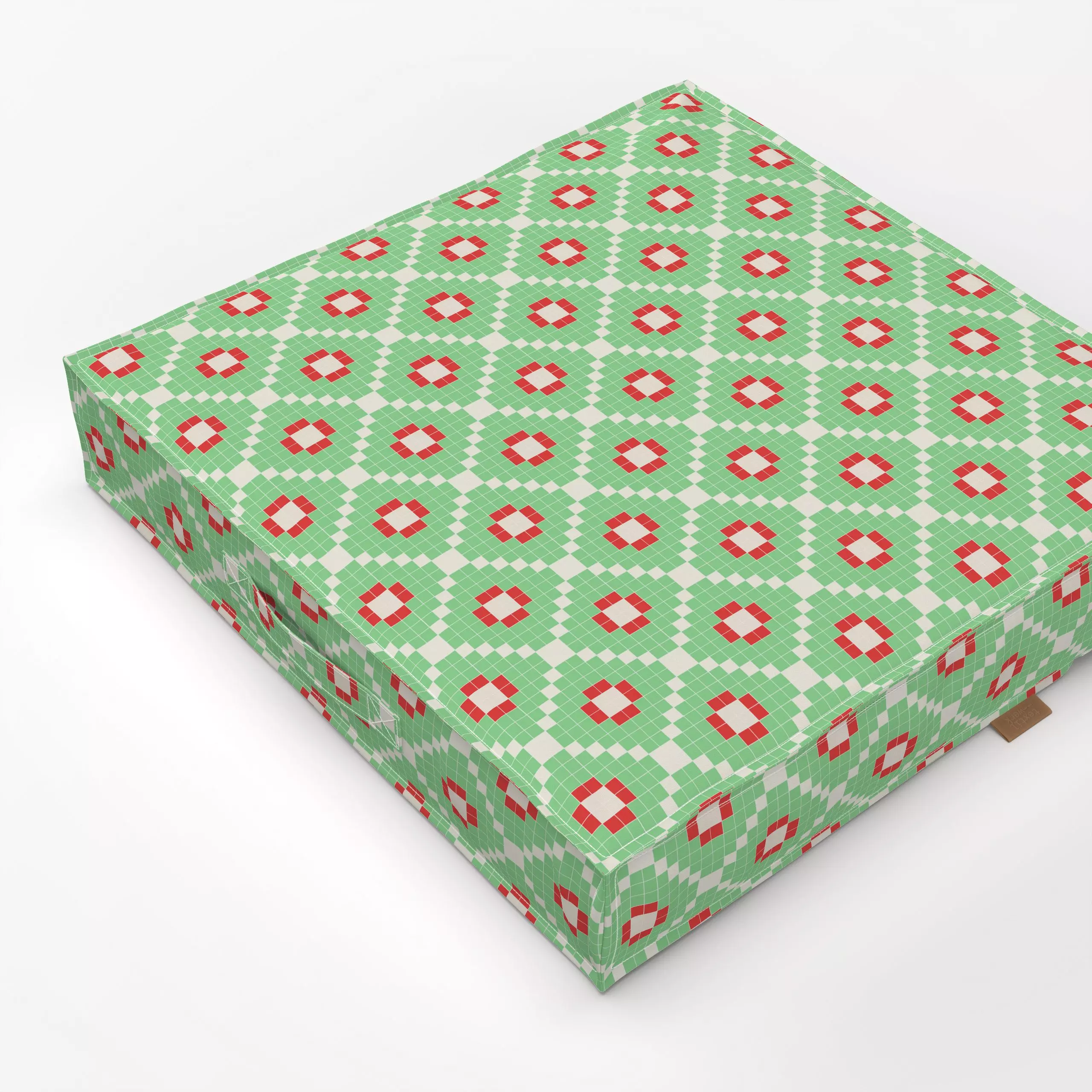 Sitzkissen Suelo De Mosaico - Sommer, Symbole & Muster - von „Karen Menzenbach"; Muster, Sommer, rot, bunt, grun, Sommerlich...