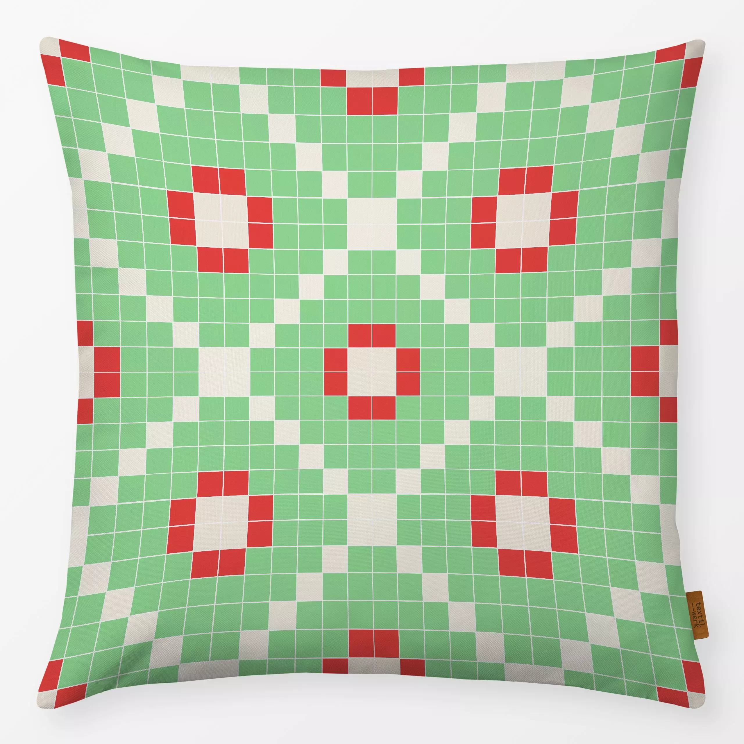 Kissen Suelo De Mosaico - Sommer, Symbole & Muster - von „Karen Menzenbach"; Muster, Sommer, rot, bunt, grun, Sommerlich, Mo...