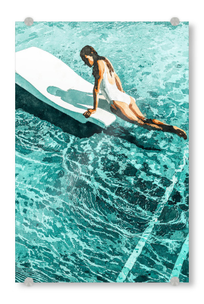 Acrylglasbild "Pool Day | Summer Swimming Swim" artboxONE - Menschen - Watercolor,Summer,Swim,Swimming,Water,Pool,Relax,Waves,Fashion,Lifestyle
