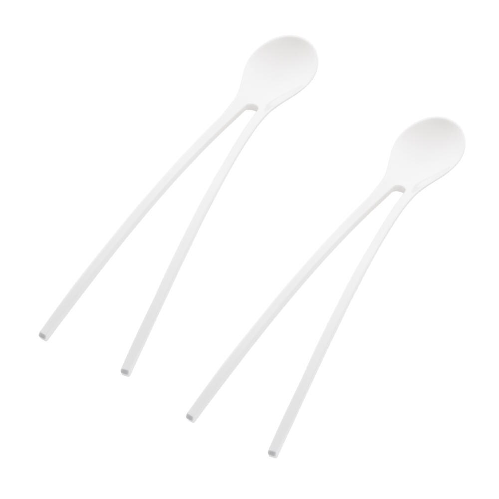Koziol Twinny Stäbchenlöffel, 2er Set, Essstäbchen, Suppenlöffel, Snackbesteck, Solid Weiß, 3645525