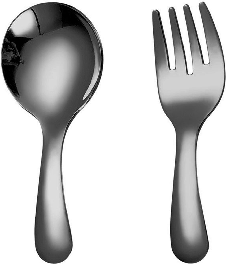 2 Teile/Satz Babylöffel-Gabel-Set aus Edelstahl, kurzer Griff, hochglanzpoliert, Mini-Eiscreme-Dessert-Tee-Suppenlöffel-Gabel-Set, Küchenbesteck...