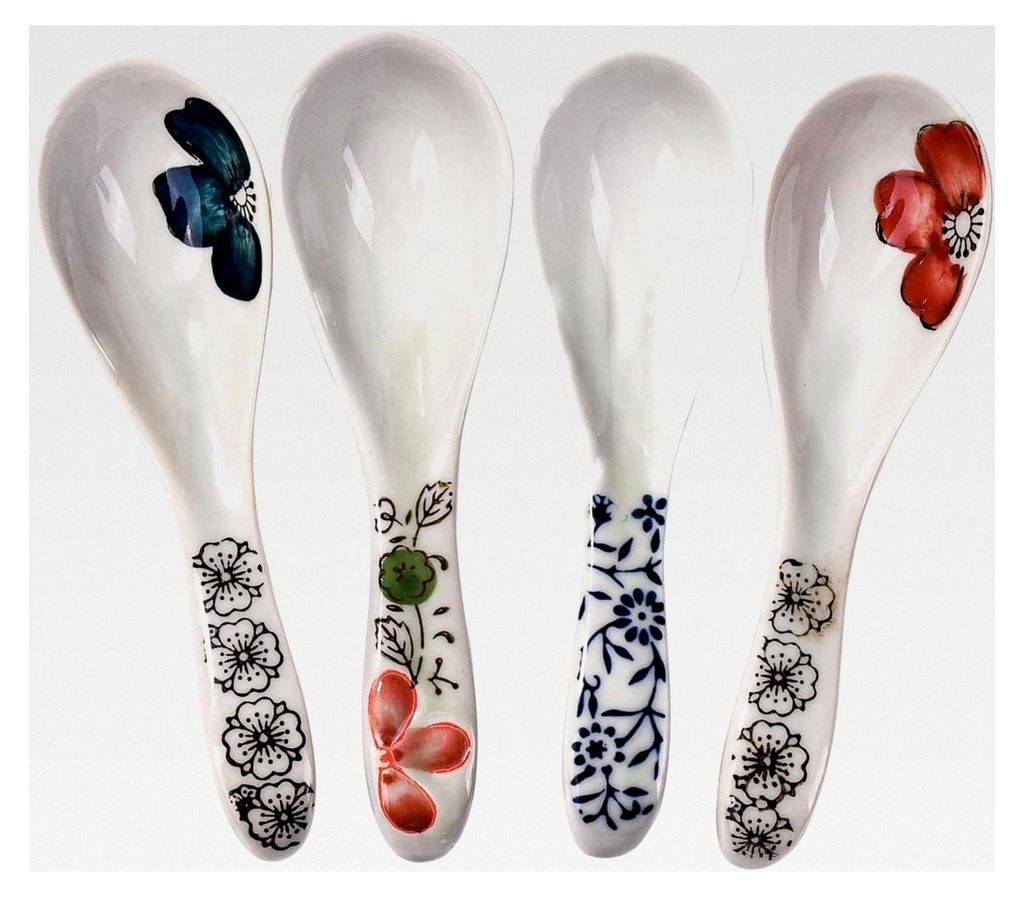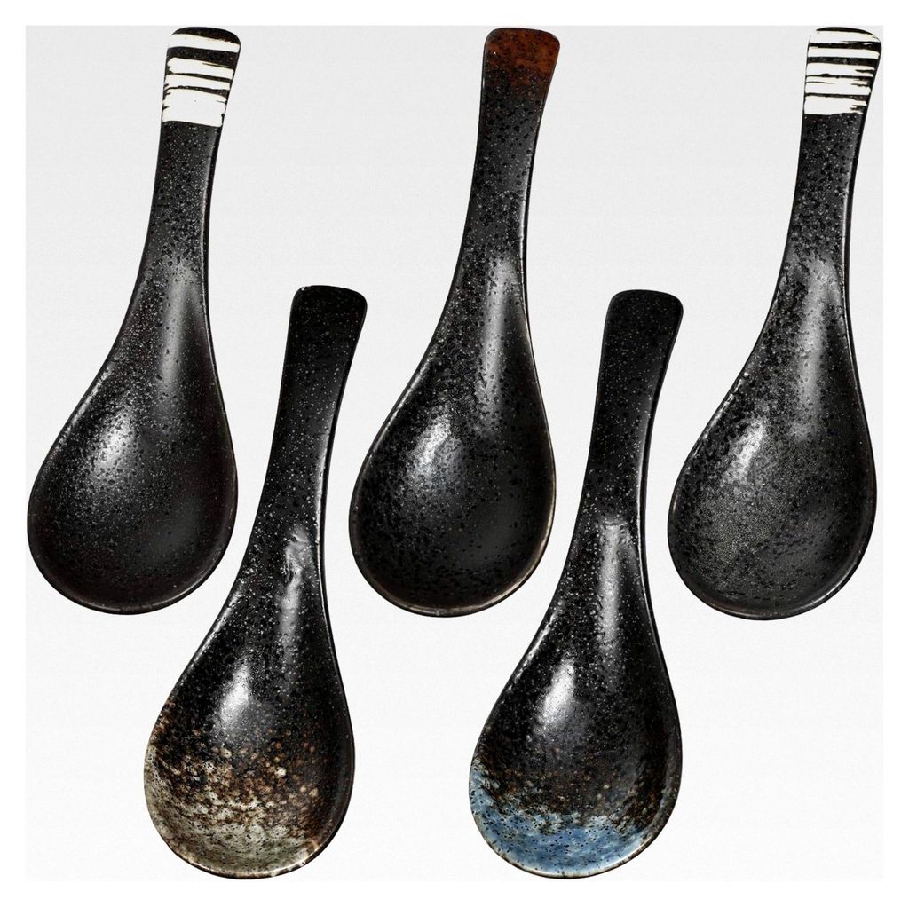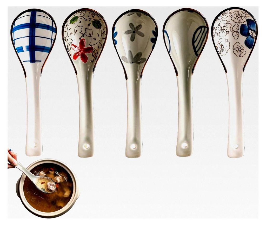 Keramik Suppenlöffel Set, 5-teilig, Japanischer Porzellan Reislöffel und Suppenlöffel - Tischgeschirr für die heimische Küche und Restaurants