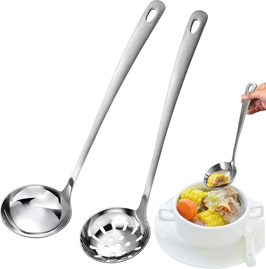 2 Stück RVS Suppenlöffel - 30x7.5cm Soßenlöffel Spülmaschinenfest - Suppenlöffel für Zuhause, Hochwertiger RVS Suppenlöffel, Gravylöffel f...
