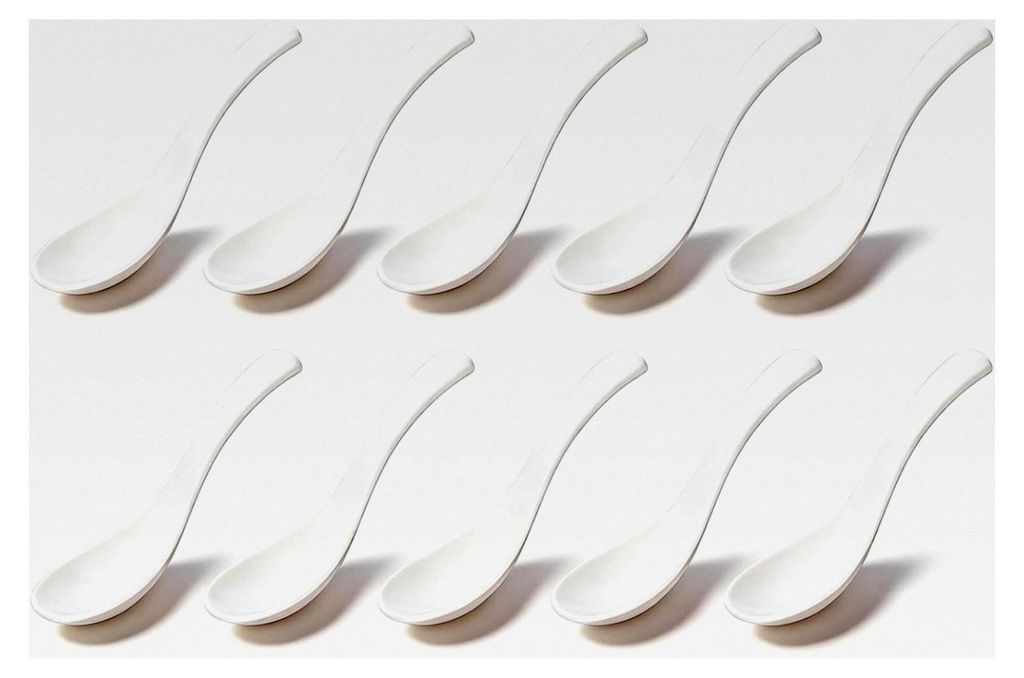 10 Stück Suppenlöffel, weiße Ramenlöffel aus Melamin für Suppen, Dumplings, Wontons und Desserts