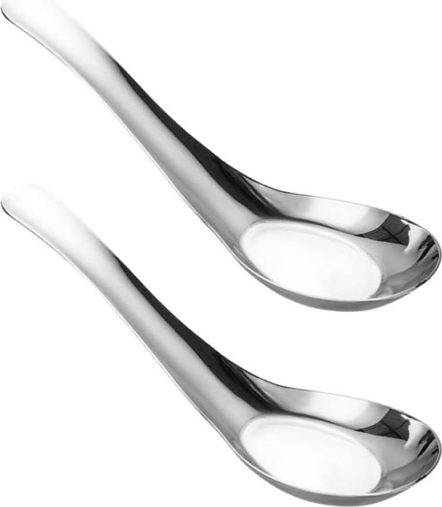 Asiatisches Suppenlöffel Set von 2 - 5,5 Zoll Edelstahl - Für Getreide, Eintöpfe, Ramen, Wonton, Knödel - Mio Tiefes Einkerbungsdesign - Spülm...