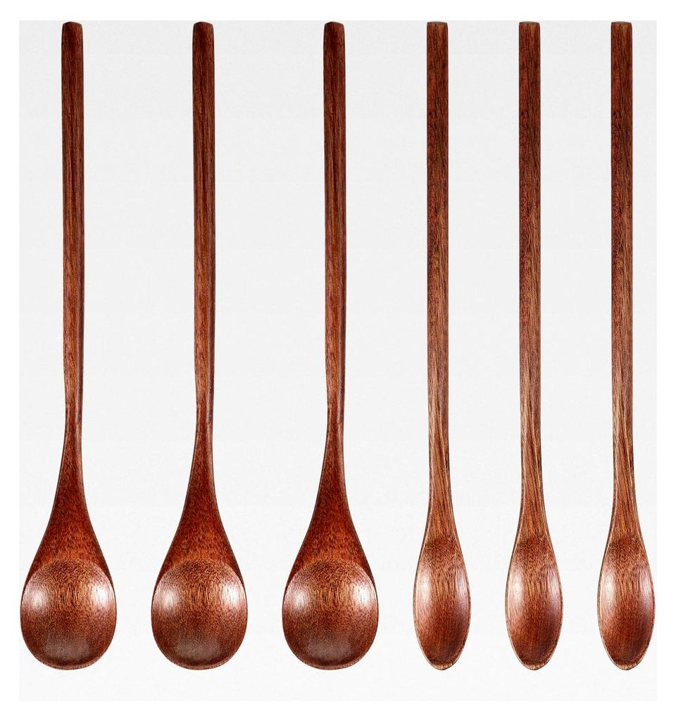 6 Stück Lange Holzlöffel, Esslöffel, Suppenlöffel Set, Honiglöffel, Handgefertigte Rührlöffel aus Naturholz, Kochlöffel für Zuhause, Café...