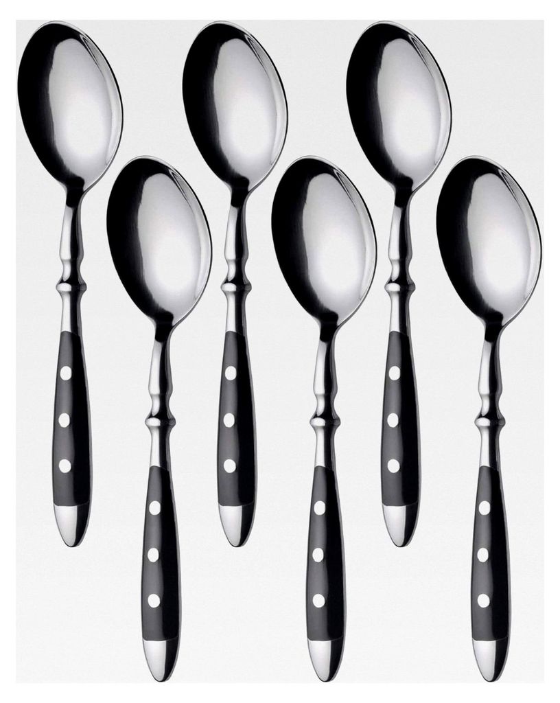 Tafel-Löffel 6er Set - Menü- und Suppenlöffel aus geschmiedetem Edelstahl, rostfrei, , schwarzer Griff