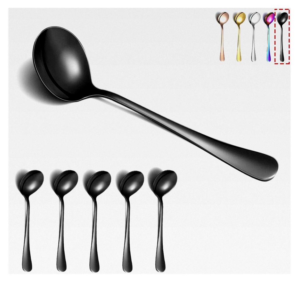 Schwarze Suppenlöffel 6-teilig aus Edelstahl mit schwarzer Titanbeschichtung, spülmaschinenfest