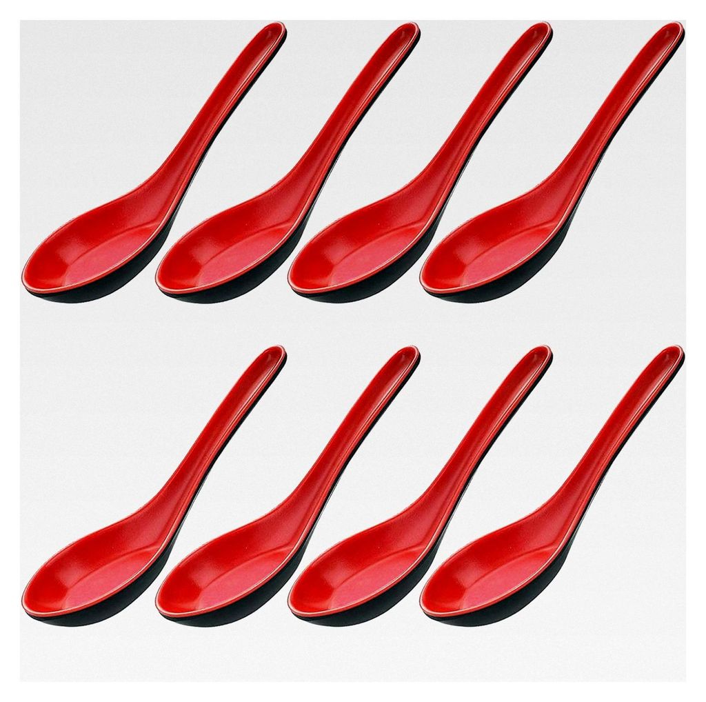 8 Stück Suppenlöffel aus Kunststoff im asiatischen Stil, rot und schwarz