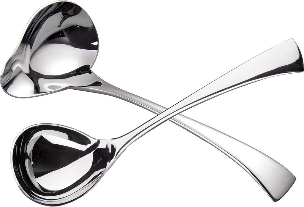 Saucenlöffel und Suppenlöffel Servierbesteckset 18/10 rostfreier Edelstahl Saucenlöffel Schöpfkelle Küchenhilfe spülmaschinenfest (2 Stück)