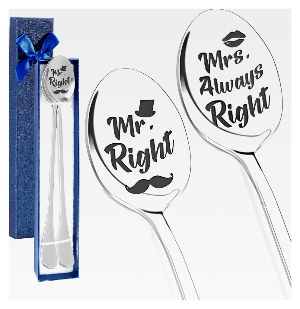 2 Stück Kaffeelöffel Edelstahl Esslöffel Suppenlöffel mit Gravur Mr & Mrs, Hochzeitsgeschenke für das Brautpaar, Verlobungsgeschenk in Geschen...