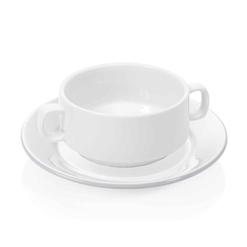 18x Suppentasse mit Henkelgriffen + Untertasse 260 ml, weiß, Porzellan