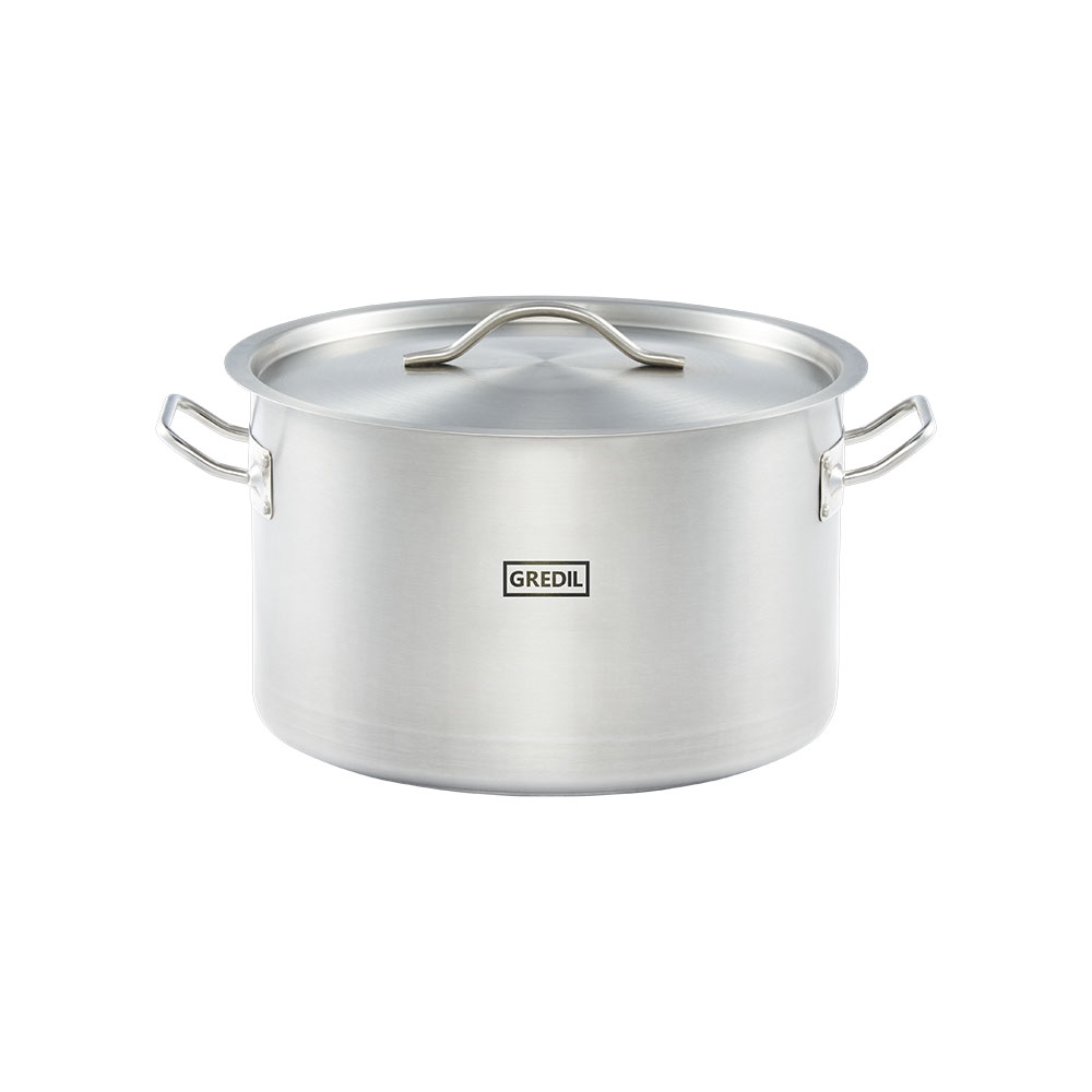 Gredil Edelstahl Suppentopf mittelhohe Form, Serie ECO Ø 320 mm, Höhe 200 mm, 16,1 Liter, inkl. Deckel