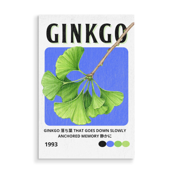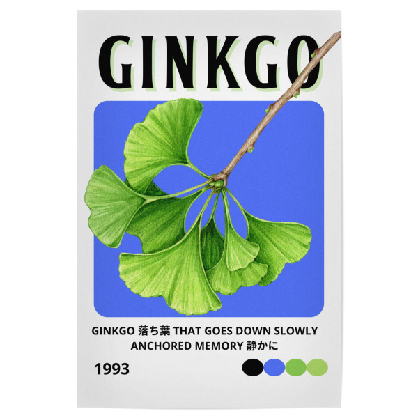 Poster "Ginkgo leaves" artboxONE - Floral,Abstrakt - Ginkgo,Leaves,Green,Blue,Japanese,Text,Color swatches,1993,Nature,Botanical.
