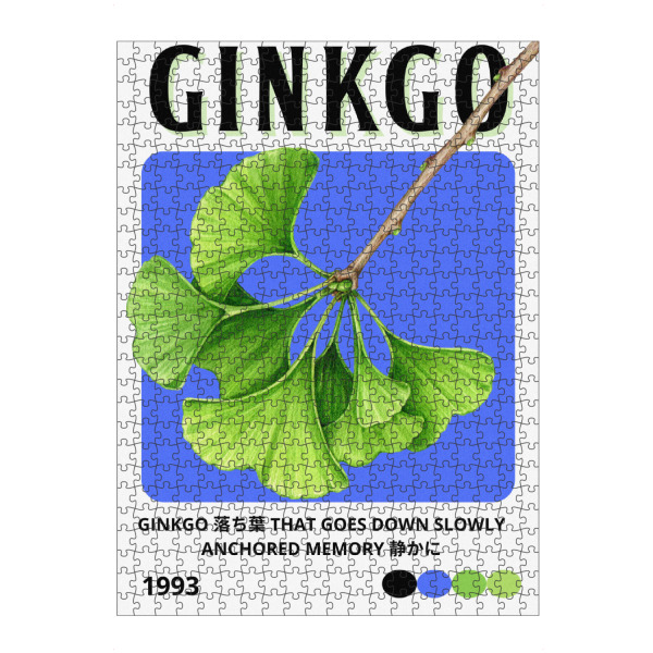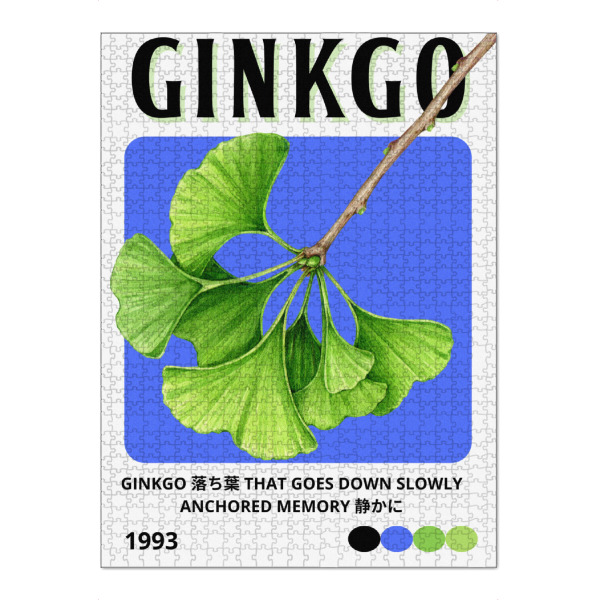 Puzzle Ravensburger "Ginkgo leaves" artboxONE - Floral,Abstrakt - Ginkgo,Leaves,Green,Blue,Japanese,Text,Color swatches,1993,Nature,Botanical.