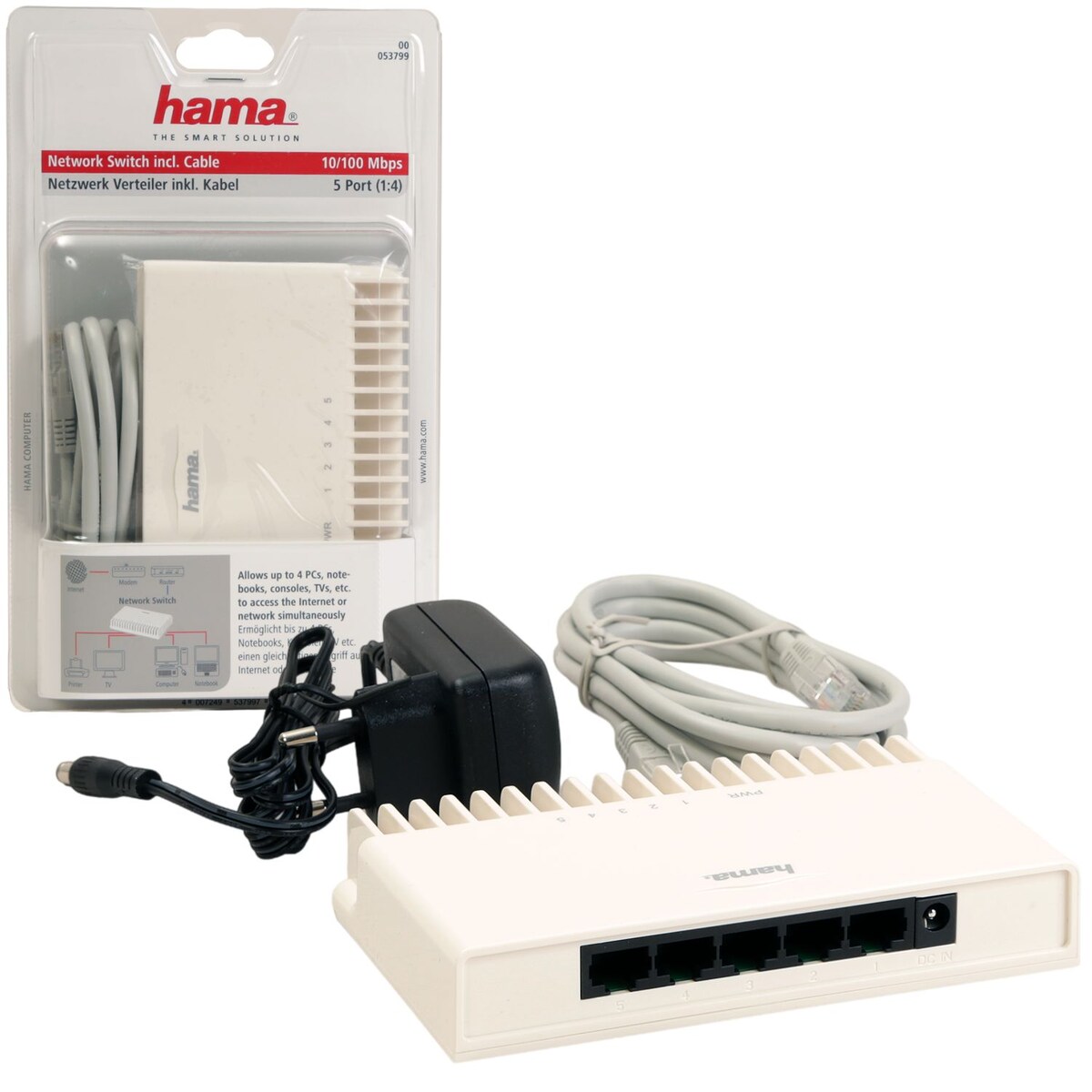 Hama Netzwerk-Switch 5-Port 10/100 inkl. Netzwerkkabel